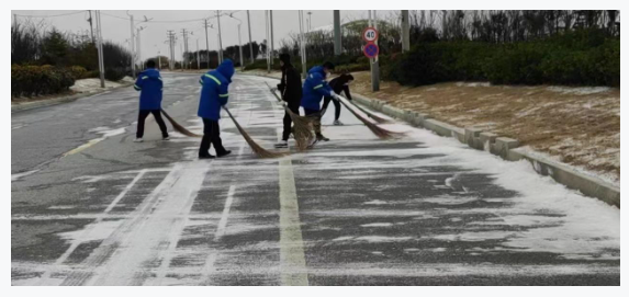 銀裝素裹齊上陣,盡顯港口人風(fēng)采。隨著2023年的第一場大雪降臨,雪花漫天飛舞,處處銀裝素裹。瑞雪帶來美景的同時,也為出行安全和設(shè)備安全帶來隱患。為全面恢復(fù)港區(qū)的安全出行和生產(chǎn)生活,保障港區(qū)道路通行順暢和生產(chǎn)設(shè)備安全,鹽城港射陽港區(qū)以雪為令,迅速安排部署,對港區(qū)主干道開展除冰鏟雪行動。行動過程中全員參加,明確責(zé)任路段,提前準(zhǔn)備融雪劑和掃雪工具,有條不紊地將路面冰雪逐一清掃干凈,通過2小時的奮戰(zhàn),最大程度降低了路面冰雪帶來的安全隱患。