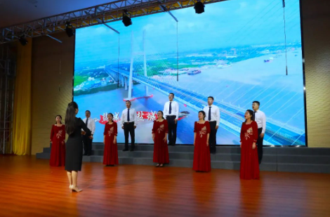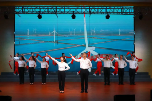 “資產(chǎn)公司作為鹽城港大家庭的年輕成員,我們希望用激昂的歌聲、鏗鏘的節(jié)奏,把干事創(chuàng)業(yè)激情和敢挑重?fù)?dān)、對使命的不懈追求融入到表演中,熱情謳歌集團(tuán)三年來的光輝歷程和驕人成就,充分展現(xiàn)出資產(chǎn)公司凝心聚力、砥礪奮進(jìn)的新氣象、新風(fēng)貌。”資產(chǎn)公司代表隊(duì)領(lǐng)隊(duì)如是說。伴隨著一首激昂的《保衛(wèi)黃河》,資產(chǎn)公司代表隊(duì)的成功演繹將現(xiàn)場氣氛推向了高潮。