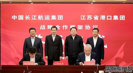 中國長江航運集團黨委委員、副總經(jīng)理李增忠,江蘇省港口集團黨委委員、副總經(jīng)理唐洪生代表雙方簽署戰(zhàn)略合作框架協(xié)議。中國長江航運集團、江蘇省港口集團相關(guān)部門、單位負責(zé)人參加簽約儀式。