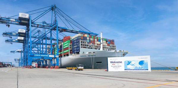 人民網(wǎng)迪拜5月31日電 (記者管克江)中國制造的全球最大級別集裝箱船“東方西班牙”輪5月30日首航停靠中遠海運港口阿布扎比碼頭。