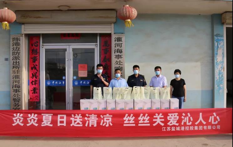 8月17日,集團(tuán)工會(huì)副主席戴禮娣率隊(duì)前往鹽城出入境邊防檢查站大豐港辦事處、鹽城海關(guān)駐大豐港辦事處、鹽城大豐海事處,開展“炎炎夏日送清涼 絲絲關(guān)愛沁人心”夏季慰問(wèn)活動(dòng),慰問(wèn)口岸一線工作人員,并送上防暑降溫慰問(wèn)品。