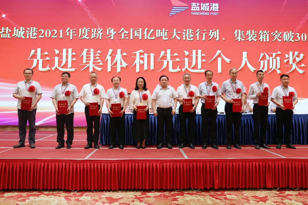 大會在雄壯的國歌聲中開幕。會議宣讀了《關于表彰2021年度躋身全國億噸大港行列、集裝箱突破30萬標箱保本點先進集體和個人及新時代“百團大戰”優秀組織獎和先進個人的決定》《關于表彰2022年第二屆職工文化藝術節獲獎先進集體和個人的決定》《關于表彰“最美鹽城港人”的決定》,并現場為先進集體和先進個人代表進行頒獎。