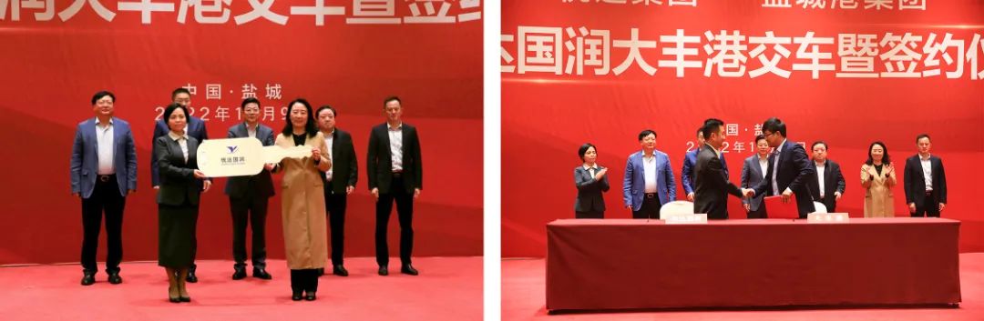 10月9日,悅達國潤大豐港交車暨簽約儀式成功舉行。集團黨委書記、董事長周正雄,悅達集團黨委書記、董事長張乃文出席活動并分別致辭。悅達集團黨委委員、常務副總經理徐兆軍,悅達集團黨委委員、副總經理解子勝,鹽城港集團副總經理袁欣,總經理助理孫永峰等參加。