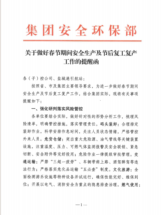 2024年是全面完成“十四五”規(guī)劃目標(biāo)任務(wù)的關(guān)鍵之年,是集團打造“五新示范港”的突破之年,也是安全生產(chǎn)治本攻堅三年行動的開局之年。集團黨委高度重視安全生產(chǎn)、環(huán)境保護、平安建設(shè)工作,從行動上落實省、市決策部署,從源頭上消除事故隱患,全力以赴落實落細(xì)安全生產(chǎn)、環(huán)境保護、平安建設(shè)各項工作,持續(xù)夯實高質(zhì)量發(fā)展根基。