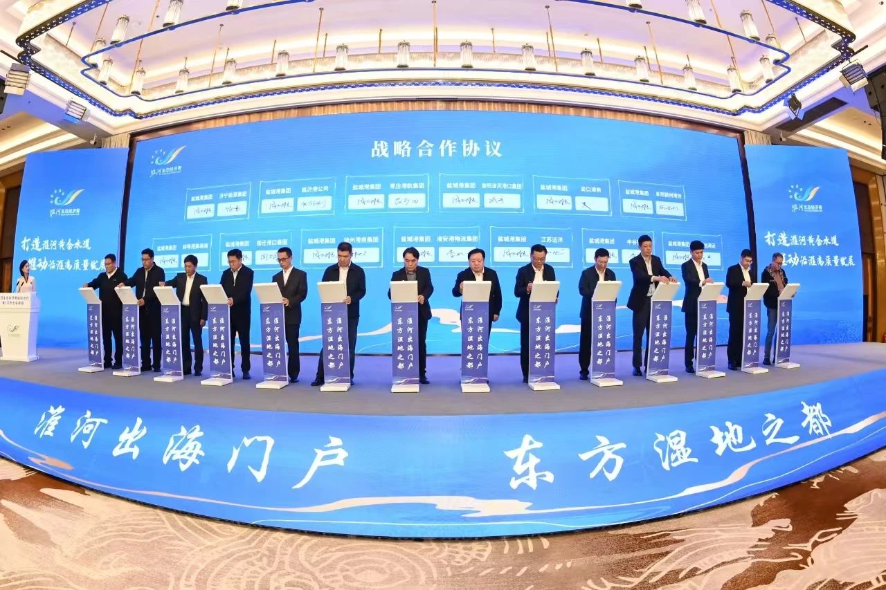 會上,與會人員觀看了淮河生態(tài)經(jīng)濟帶協(xié)同發(fā)展成果專題片,聽取了淮河生態(tài)經(jīng)濟帶城市合作工作推進情況、淮河生態(tài)經(jīng)濟帶市際合作協(xié)議及重點合作事項。交通運輸部規(guī)劃研究院專家圍繞“淮河水運啟新程 航運藍圖展未來”作主旨演講。29個成員市(縣)負責同志共同簽署了《淮河生態(tài)經(jīng)濟帶生態(tài)環(huán)境保護市際合作協(xié)議》《淮河生態(tài)經(jīng)濟帶水運高質(zhì)量發(fā)展市際合作協(xié)議》《淮河生態(tài)經(jīng)濟帶綠色低碳發(fā)展市際合作協(xié)議》,淮河沿線港航、物流企業(yè)等單位與鹽城港集團簽署了戰(zhàn)略合作協(xié)議。沿淮成員城市(縣)長作交流發(fā)言?;春由鷳B(tài)經(jīng)濟帶城市合作第六次市長會商會承辦城市安徽省亳州市向沿淮市(縣)發(fā)出盛情邀請。