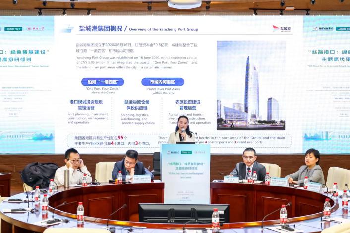11月25日,集團總經理袁欣代表集團出席“絲路港口·綠色智慧”圓桌對話活動,在鹽城港專場,發表“攜手共進,共創‘一帶一路’港口合作新篇章”主題演講,并分享了鹽城港的管理、建設、運營、對外合作等方面的經驗。交通運輸部、福建省港口集團、中國港灣集團等相關領導出席專場活動。