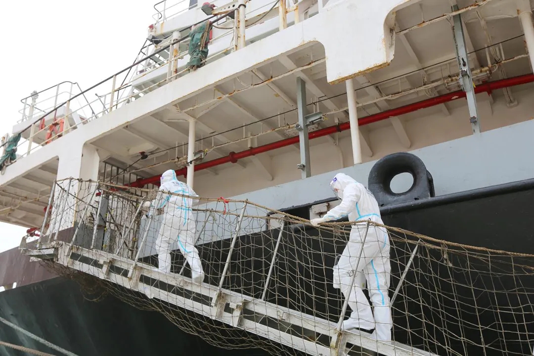 接到任務(wù)后,濱海港區(qū)第一時(shí)間制定了“普拉通”輪專項(xiàng)應(yīng)急方案,布置船岸隔離、進(jìn)出管控、通風(fēng)消毒、個(gè)人防護(hù)、終末消殺、應(yīng)急處置等工作,明確各環(huán)節(jié)責(zé)任主體。疫情船靠泊期間,港區(qū)停止一切貨物裝卸作業(yè),通知候泊船舶轉(zhuǎn)港裝卸,清空碼頭面及堆場(chǎng)的人和物,對(duì)重點(diǎn)人員、重點(diǎn)部位啟動(dòng)高風(fēng)險(xiǎn)防控工作標(biāo)準(zhǔn)。對(duì)貨輪靠泊區(qū)域進(jìn)行全面封閉管理,除引航員、登臨檢疫人員等必需人員外,一律不得登船。同時(shí),協(xié)助海關(guān)、海事、邊檢、濱海縣衛(wèi)健委及船代等部門(mén)、單位形成聯(lián)合管理機(jī)制,內(nèi)外聯(lián)動(dòng)、共同加強(qiáng)對(duì)疫情船舶的監(jiān)督管理工作,做好港口人員排查、隔離,嚴(yán)把疫情防控第一關(guān),確保港區(qū)口岸安全,真正做到疫情防控和生產(chǎn)經(jīng)營(yíng)“兩手抓、兩不誤”。