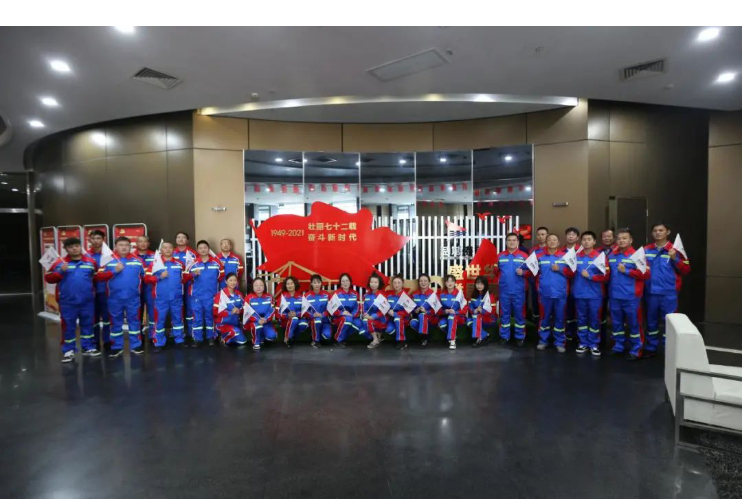 活動中,全體職工們揮舞著黨旗,聲情并茂、意氣風(fēng)發(fā),用振奮人心的紅色旋律為祖國72周年華誕獻(xiàn)禮。現(xiàn)場高亢的歌聲、優(yōu)美的旋律、豪邁的氣勢,無一不充分體現(xiàn)了鹽城港人昂揚(yáng)向上的精神風(fēng)貌。