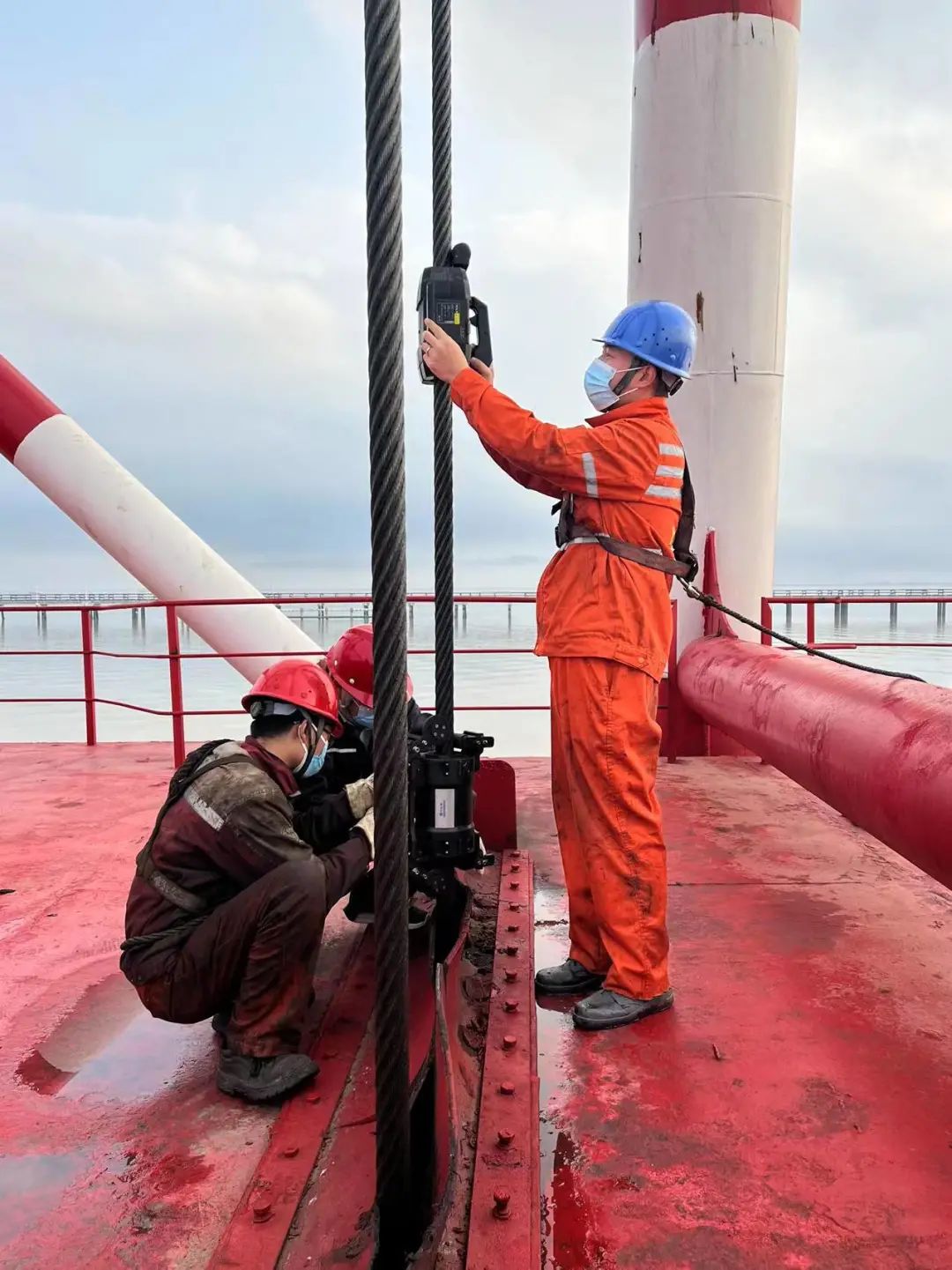 活動現場,威爾若普公司專家通過機器實測,利用其全球領先的磁記憶式鋼絲繩AI弱磁檢測技術,對鋼絲繩的銹蝕、磨損、疲勞、變形等損傷程度進行定量檢測,從而準確判定被測鋼絲繩的剩余承載能力和更換周期。經過多次反復試驗對比,機器檢測的結果與鋼絲繩的實際情況高度一致。該技術突破了人工檢測的局限性,將生產、檢測兩個流程合二為一,大大節約了檢測時間,在降低檢測成本的同時,提高了檢測質量,科學地延長了鋼絲繩的使用壽命。活動中,威爾若普公司專家還分享了該技術的工作原理以及在國內外港口行業的實際應用情況。