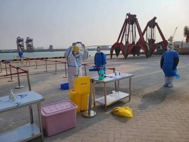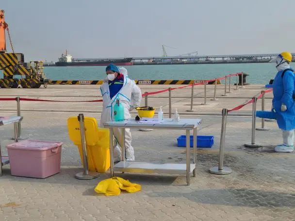 本次演練從實戰出發,結合港口實際,檢驗港口一線防疫工作人員對核酸檢測呈陽性人員的發現、隔離、疫情報告、轉運、個人防護及消殺等能力。