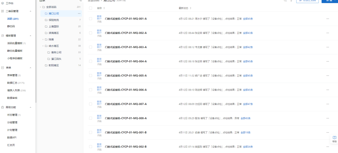 近日,科技集團(tuán)配合鹽城港集團(tuán)設(shè)備技術(shù)部,完成了鹽城港全港區(qū)兩百多臺設(shè)備專屬“二維碼身份證”的布置工作,將“二維碼”應(yīng)用與設(shè)備管理相結(jié)合,完成設(shè)備管控化繁為簡,實現(xiàn)了“數(shù)據(jù)多跑腿,工作少跑路”的管理創(chuàng)新。