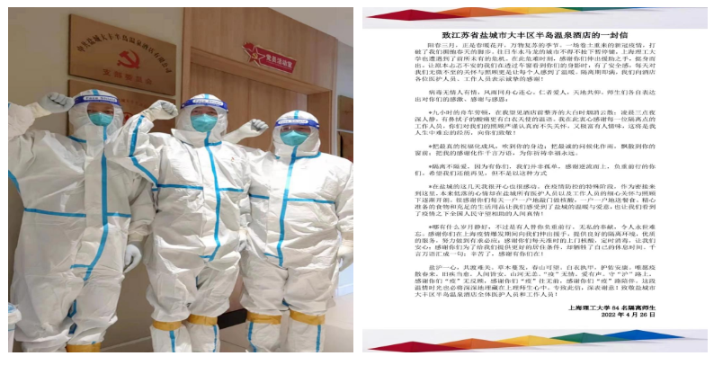 風浪顯擔當,患難見真情。鹽城港先后兩次完成兄弟城市集中醫學觀察點任務,在半島溫泉酒店攜手抗疫,同擔風雨,共克時艱,守望相助。大家隔著口罩、防護服、屏幕、便簽紙相見,熟悉卻又素未謀面,但一次次問候,一句句叮囑,一聲聲感謝,都彌足珍貴,銘記于心。真誠換真心,隔離結束后,各類社交軟件的瘋狂點贊、一面面錦旗、一幅幅漫畫、一封封感謝信,傳遞的不僅僅是肯定,更是感激。