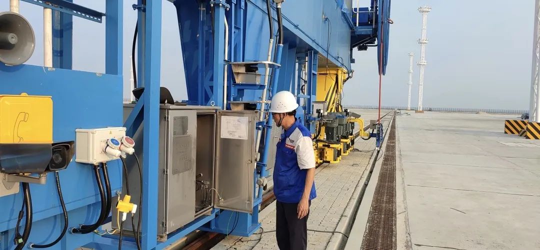 為強(qiáng)化項(xiàng)目管理,積極研究、建立風(fēng)控管理體系,他敢為人先,在信息化、數(shù)字化、智能化的發(fā)展道路上不斷探究。他曾說(shuō)“深入一線才是做好管理的重中之重”。進(jìn)入夏季以來(lái),當(dāng)氣溫升至38度左右時(shí),軌道吊表面的溫度也遠(yuǎn)超60度,他身先士卒,帶領(lǐng)一線員工數(shù)次登高在滾燙的鋼結(jié)構(gòu)件表面安裝、調(diào)試自動(dòng)化設(shè)備,仔細(xì)摸排,現(xiàn)場(chǎng)指導(dǎo)、現(xiàn)場(chǎng)動(dòng)手,從技術(shù)層面為項(xiàng)目提供可靠的支撐。