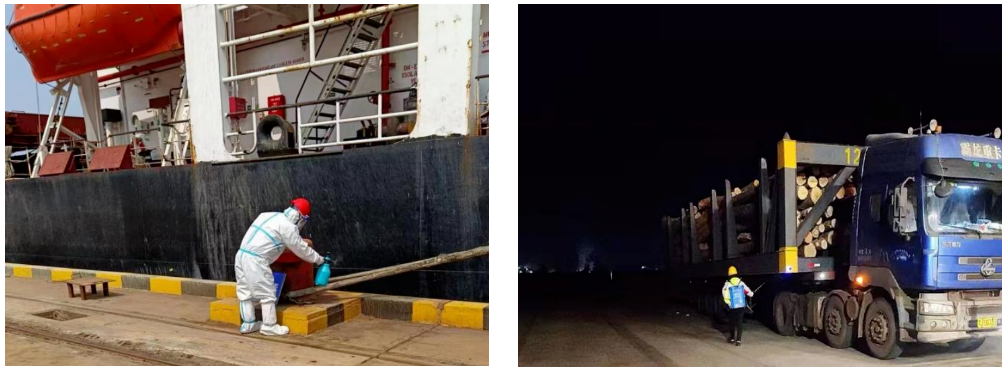 在接卸作業(yè)過(guò)程中,港口公司嚴(yán)格實(shí)施防疫管控方案,設(shè)置人員警戒通道,確保作業(yè)人員與船員零接觸;崗?fù)ぶ凳厝藛T24小時(shí)現(xiàn)場(chǎng)蹲守,消殺人員每4小時(shí)對(duì)防疫崗?fù)ぁ⒋荨ⅰ叭齾^(qū)兩通道”、作業(yè)機(jī)械等進(jìn)行消毒,確保各個(gè)環(huán)節(jié)不出任何疏漏,形成有效閉環(huán)管理,保障安全生產(chǎn)順利進(jìn)行。