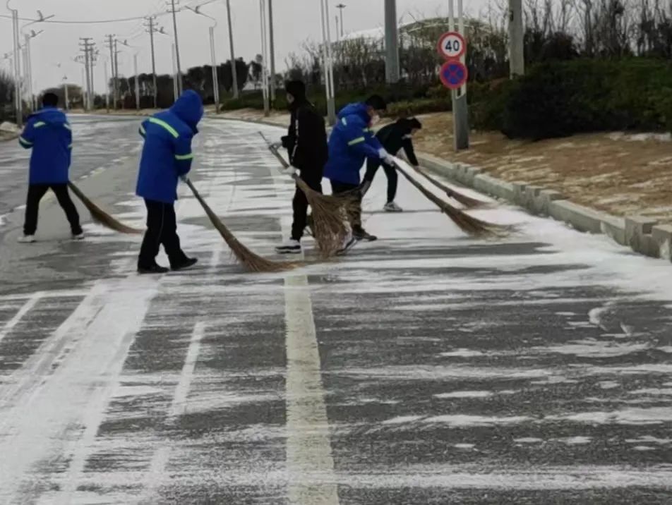 銀裝素裹齊上陣,盡顯港口人風(fēng)采。隨著2023年的第一場(chǎng)大雪降臨,雪花漫天飛舞,處處銀裝素裹。瑞雪帶來(lái)美景的同時(shí),也為出行安全和設(shè)備安全帶來(lái)隱患。為全面恢復(fù)港區(qū)的安全出行和生產(chǎn)生活,保障港區(qū)道路通行順暢和生產(chǎn)設(shè)備安全,射陽(yáng)港區(qū)以雪為令,迅速安排部署,對(duì)港區(qū)主干道開(kāi)展除冰鏟雪行動(dòng)。行動(dòng)過(guò)程中全員參加,明確責(zé)任路段,提前準(zhǔn)備融雪劑和掃雪工具,有條不紊地將路面冰雪逐一清掃干凈,通過(guò)2小時(shí)的奮戰(zhàn),最大程度降低了路面冰雪帶來(lái)的安全隱患。