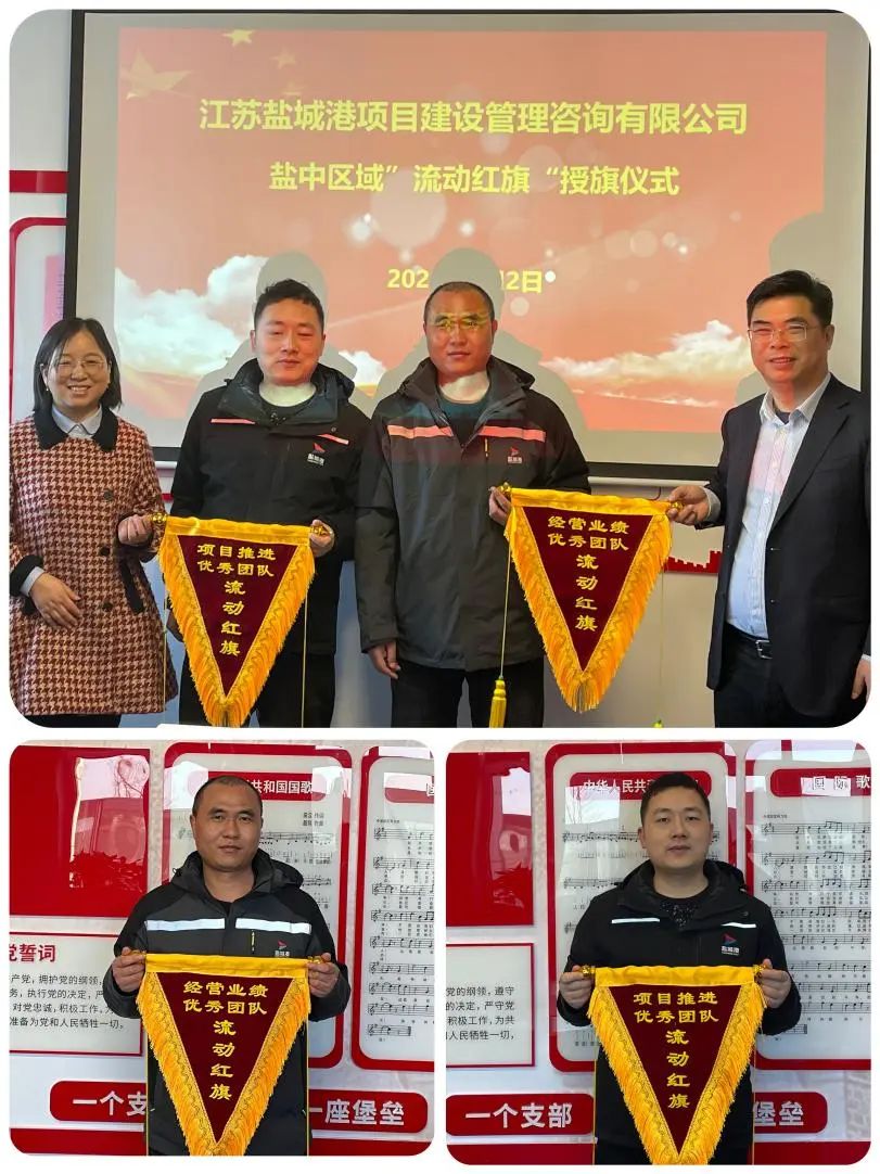 對標先進找差距 競標奪旗促管理|鹽城港項目管理公司舉行“流動紅旗”授旗儀式