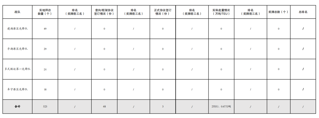 活動開展以來,累計拜訪客戶數量523家,簽訂意向/框架協議數量48份,簽訂正式協議3份,實際走量0.67萬噸、2TEU。