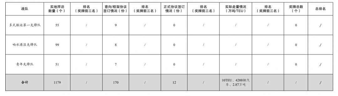 活動開展以來,累計拜訪客戶數量1179家,簽訂意向/框架協(xié)議數量170份,簽訂正式協(xié)議12份,實際走量10TEU、4200輛汽車、2.87萬噸。