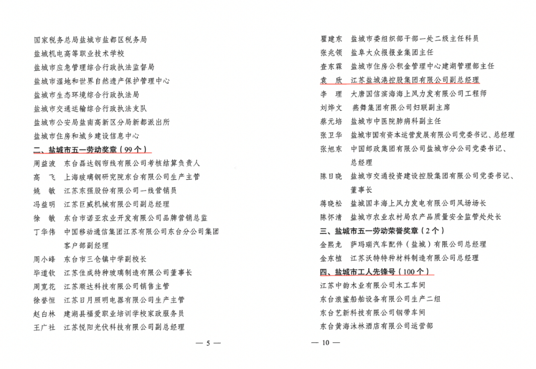 榮獲“鹽城市五一勞動獎章”