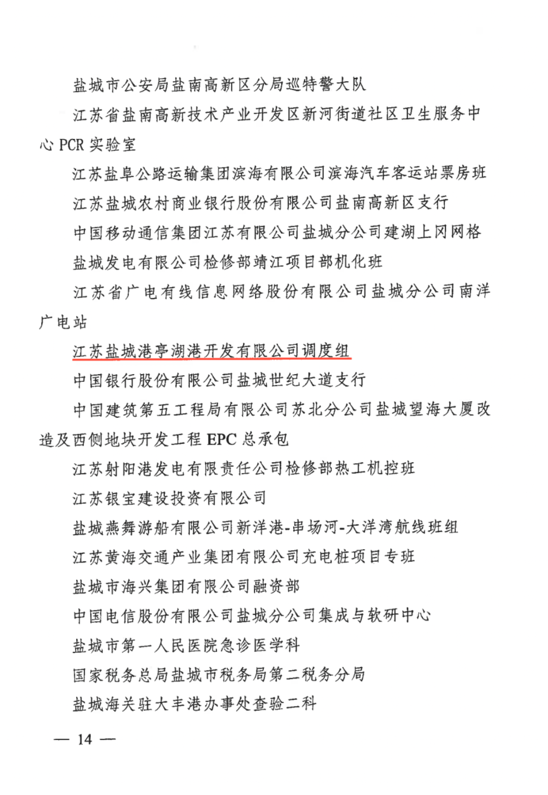 江蘇鹽城港亭湖港開發有限公司調度組