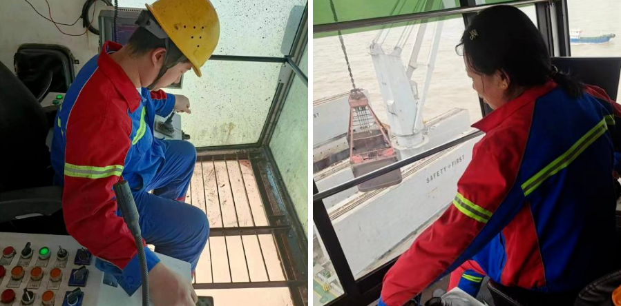 門機司機正在進行卸船作業