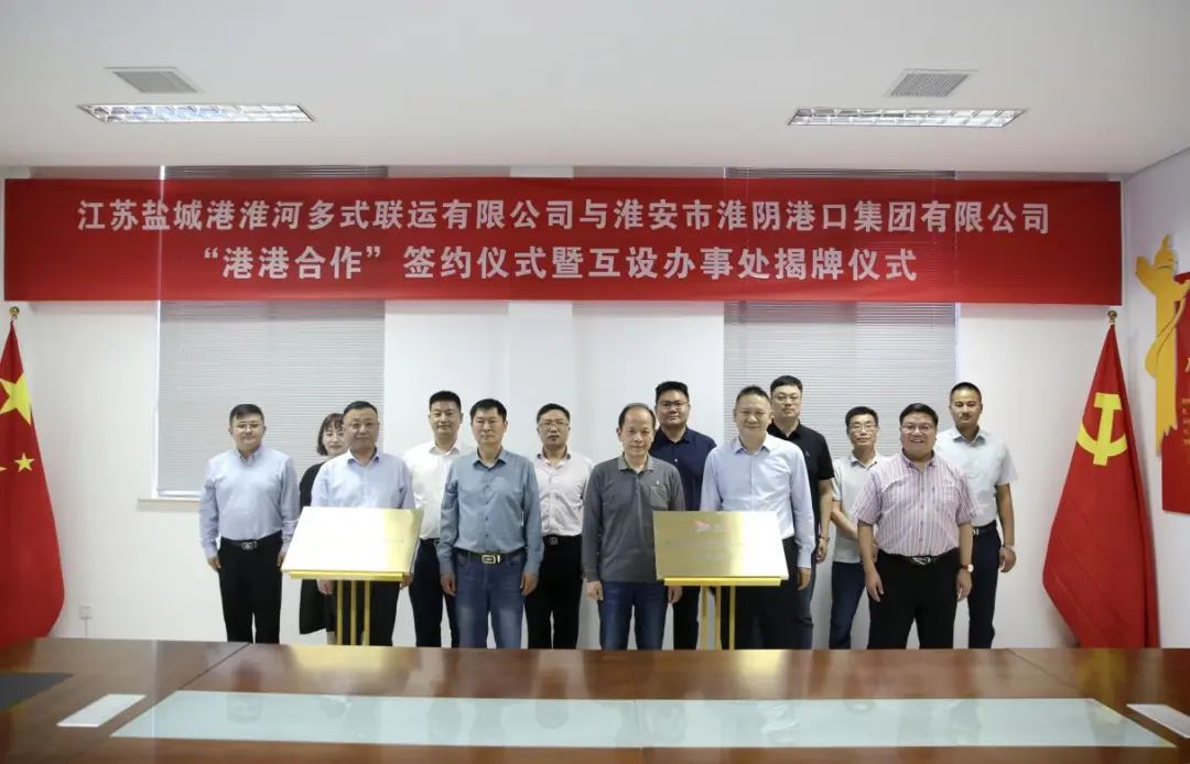 鹽城港淮河多式聯運公司與淮陰港口集團“港港合作”簽約儀式暨互設辦事處揭牌儀式成功舉行