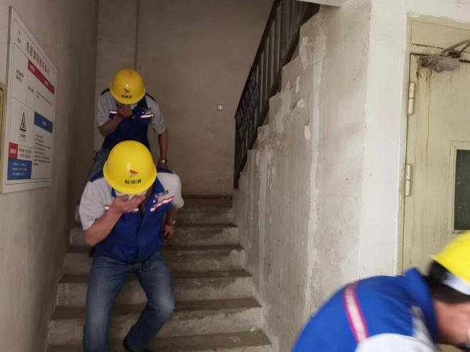 在作業(yè)區(qū)逃生演練階段,模擬筒倉(cāng)作業(yè)區(qū)內(nèi)出現(xiàn)突發(fā)火情,員工按照預(yù)定疏散的逃生路線快速、有序地撤離到指定地點(diǎn),班組報(bào)數(shù)清點(diǎn)人數(shù),整個(gè)過程無爭(zhēng)搶、無摔倒、無推搡,員工應(yīng)對(duì)從容冷靜,表現(xiàn)出良好的應(yīng)急處理能力。在滅火演練階段,安環(huán)部工作人員對(duì)員工進(jìn)行消防知識(shí)講解和滅火器示范操作培訓(xùn),參演人員輪番上陣,以零距離互動(dòng)的形式,親身體驗(yàn)使用滅火器撲滅明火的操作過程,有效提高了員工的應(yīng)變能力。