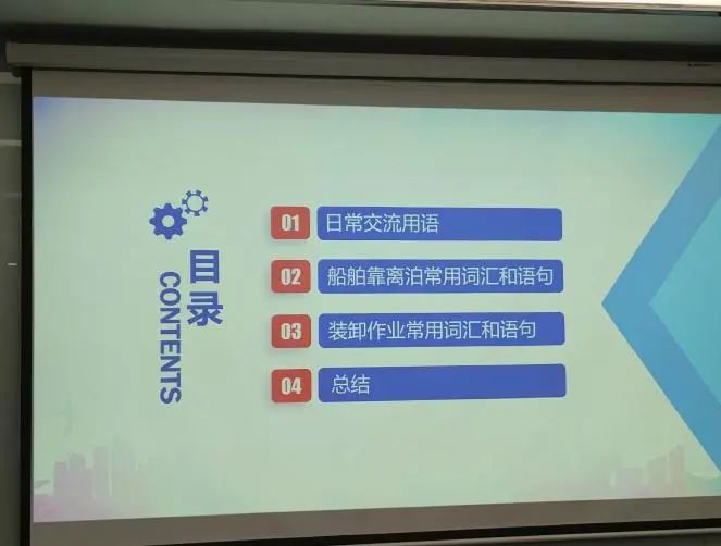 為貫徹落實鹽城港集團“創新創優”工作理念,持續提升員工英語水平,提高服務質量,增強核心競爭力,近日,智慧港口公司精心策劃組織開展了碼頭常用英語培訓課程,碼頭現場調度、一線生產人員、勞務人員等40余名學員參加活動。