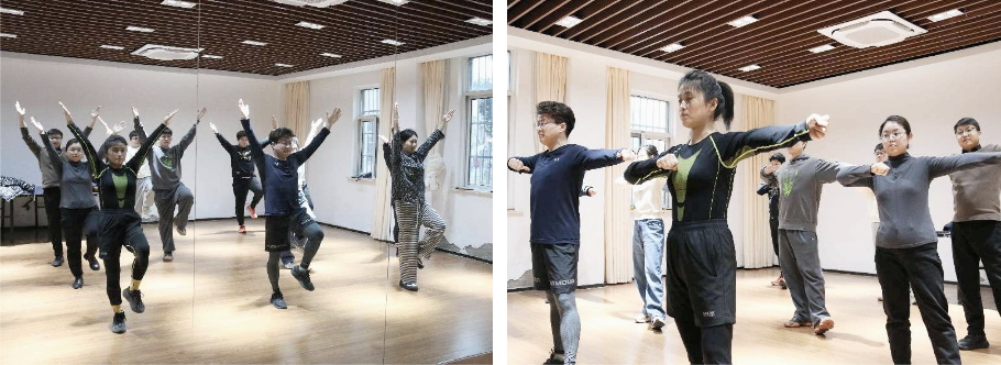 大家時而曲腿、時而展臂