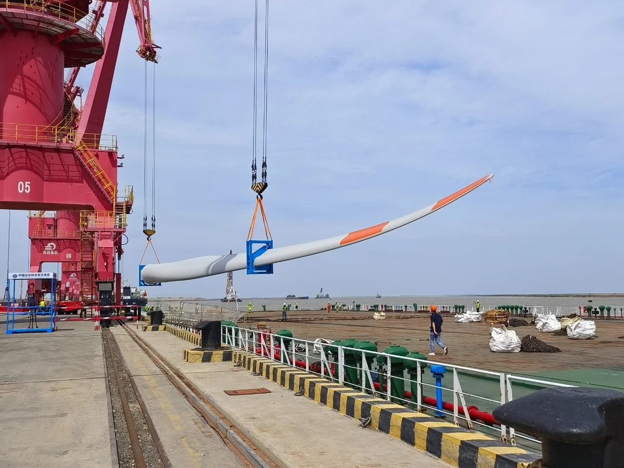 針對此次業(yè)務(wù),射陽港區(qū)成立工作專班,以“全過程”“一站式”服務(wù)為抓手,與業(yè)務(wù)單位落實具體合作細(xì)節(jié)。一方面多次邀請物流單位至現(xiàn)場協(xié)調(diào)溝通葉片進(jìn)場、落場、葉片清洗、短駁、裝卸指揮、船舶進(jìn)出港等流程環(huán)節(jié),并以沙盤演練的方式,提前部署解決各環(huán)節(jié)存在堵點;另一方面前往聯(lián)檢單位對接業(yè)務(wù)動態(tài),在為客戶提供了“一站式”通關(guān)服務(wù)的同時,大大降低企業(yè)運輸成本和時間,真正從客戶視角出發(fā),讓客戶體驗風(fēng)電裝備進(jìn)出口港的“港口+”全流程“定制化服務(wù)”。