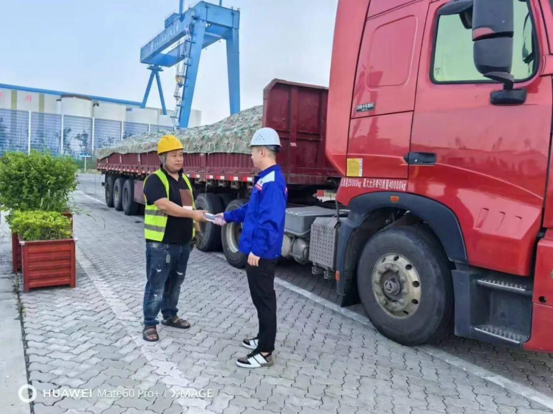 為進一步做好現(xiàn)場安全管理工作,對運輸車輛作業(yè)前進行安全檢查,要求司機嚴格按照港區(qū)限速要求行駛,尤其是磅房、轉(zhuǎn)彎處,必須提前減速,避免急剎。與此同時,為防止土石遺撒,最大程度減少對碼頭、道路及行駛環(huán)境的安全影響,采取“動態(tài)巡查+人工清掃+機械配合”的作業(yè)模式,對每臺運輸車輛進行嚴密苫蓋,在車輛運輸路線上布置清掃車,通過“人工掃帚+清掃車”清掃等組合方式,確保港區(qū)環(huán)境干凈整潔。