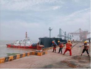 是百米巨輪穩(wěn)穩(wěn)??看a頭岸邊