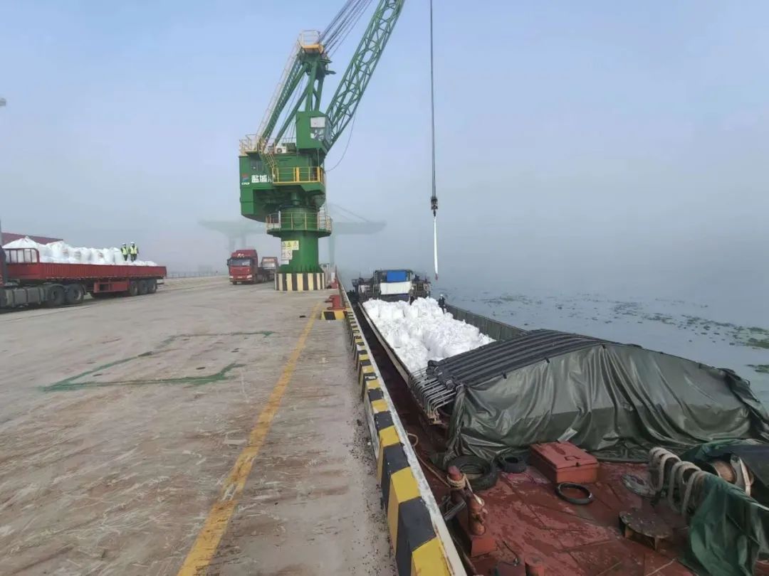 11月3日晨光初照,通榆河畔不遠處,滿載著953噸水泥噸袋的“湘懷化貨7728”貨輪緩緩駛入了亭湖港的生產作業區域,隨著薄霧漸漸散去,在確保安全生產的前提下,港區員工們迅速投入裝卸工作中,高效完成作業任務。