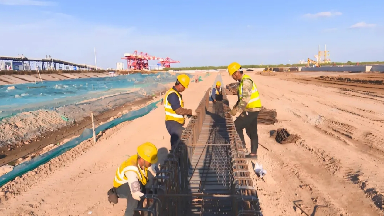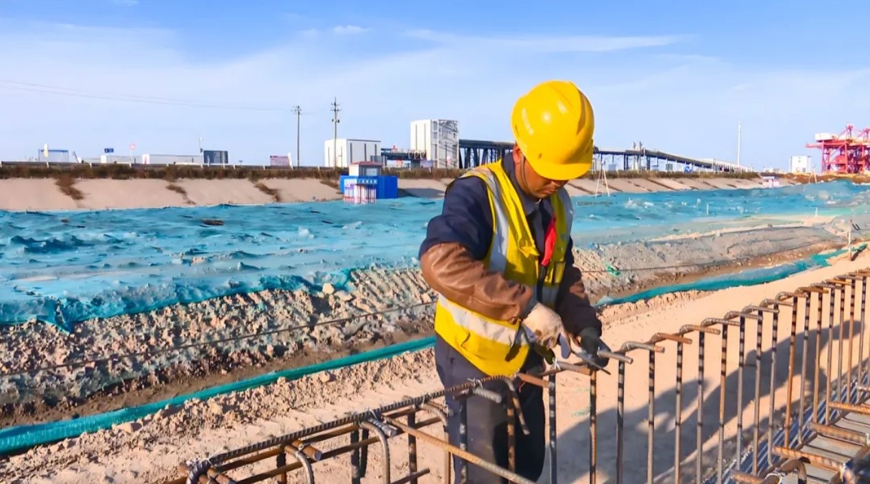 ????濱海港區(qū)主港區(qū)北區(qū)通用碼頭三期工程位于濱海港區(qū)規(guī)劃主港池北側(cè),新建一個以裝卸散裝為主的公共碼頭,總投資約8億元,共布置10萬噸及通用泊位1個,泊位總長310m,設計通過能力為415萬噸/年,可滿足散貨每年270萬噸、件雜貨每年120萬噸的吞吐量要求。項目于2022年12月開工建設,計劃于今年12月完工。