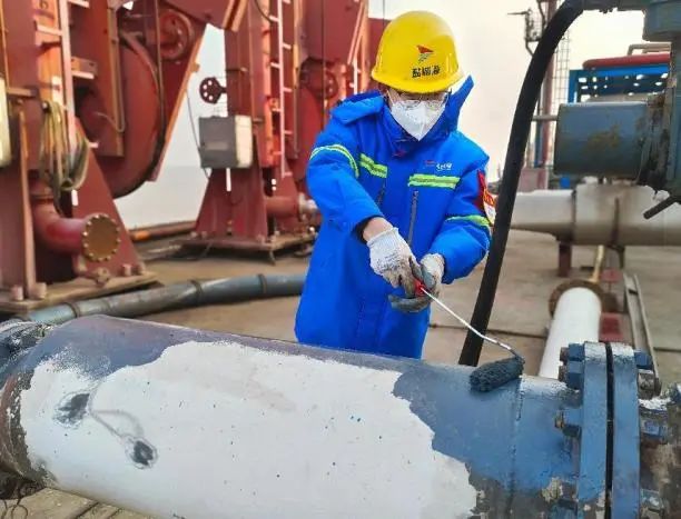 行動期間,工作人員根據(jù)作業(yè)方案嚴格落實相關(guān)防范措施,采用科學(xué)的除銹方法與現(xiàn)場相匹配的漆料,仔細打磨掉碼頭裝卸設(shè)備、管道、閥門等設(shè)備表面的銹跡與舊漆,進行細致處理,然后均勻涂刷上底漆與面漆。每一道工序都飽含專注與努力,確保涂層平整光滑、附著力強,能為設(shè)施提供長效防護。