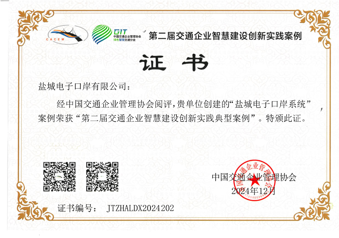 鹽城港集團兩項成果入選“第二屆交通企業(yè)智慧建設(shè)創(chuàng)新實踐-典型案例”