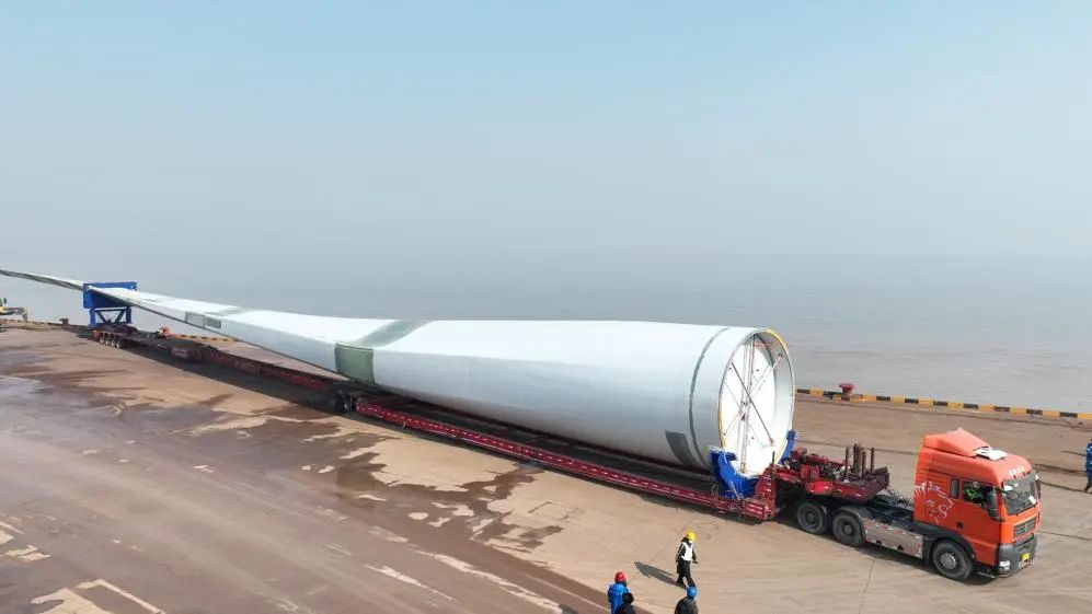 147米!國內最長葉片在鹽城港大豐港區順利吊裝