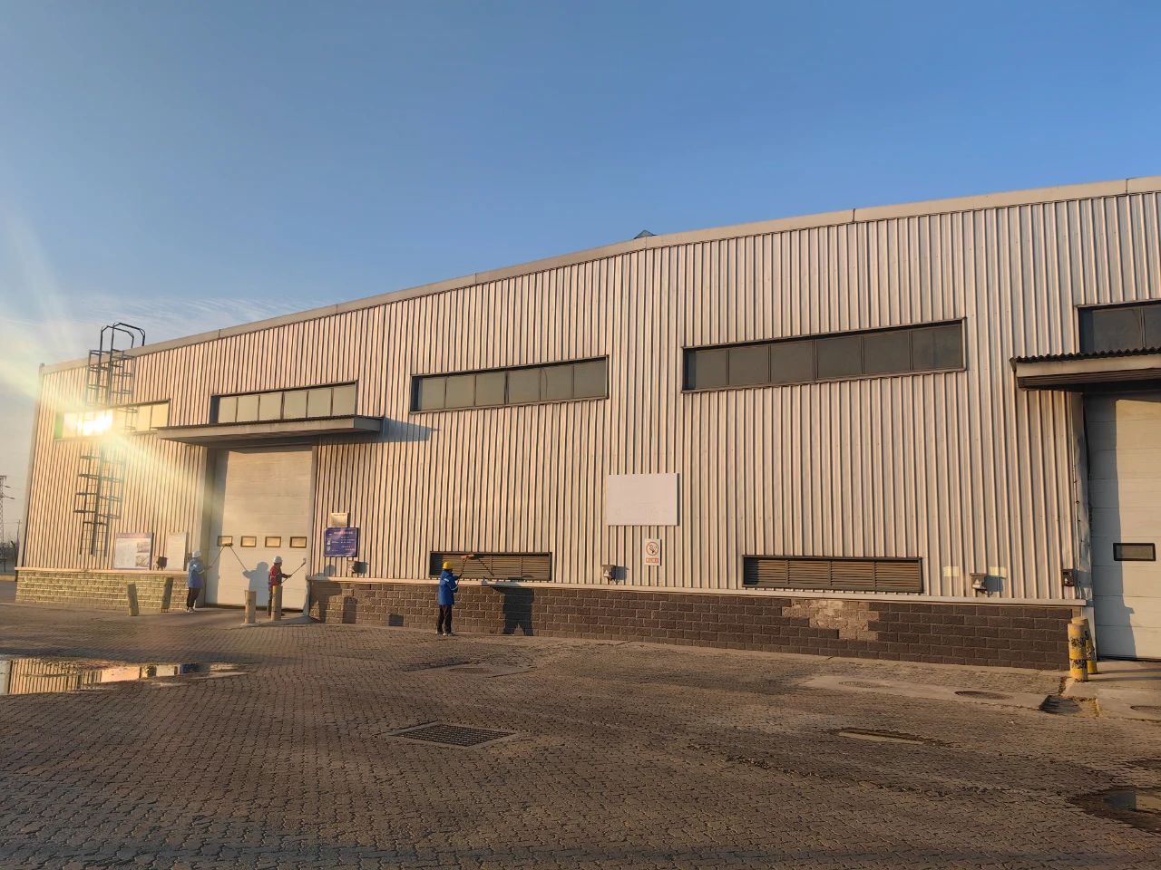 清潔工作嚴格按照專業流程進行。首先是細致的檢查,專業人員對倉庫外表面進行全面 “體檢”,標記出污垢嚴重的區域和可能存在的墻面損傷。接著,進行預沖洗,用低壓水流初步濕潤墻面,為后續的深度清潔做好準備。然后,根據污垢類型,均勻涂抹清潔劑,靜靜等待其發揮作用。在清潔過程中,清潔人員還會密切關注清潔劑的停留時間,既保證清潔效果,又避免對墻面造成過度腐蝕。最后,用高壓水槍進行徹底沖洗,將溶解的污垢和殘留的清潔劑一并沖走,讓墻面煥然一新。每一個步驟都緊密相連,每一次操作都精準到位,這不僅是對清潔質量的嚴格要求,更是對港口倉庫這一重要基礎設施的精心呵護。