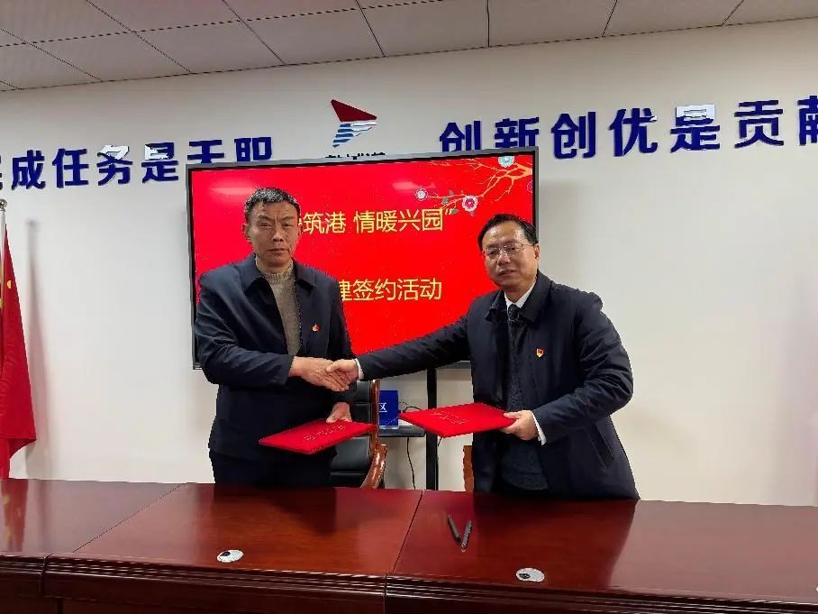 參觀結(jié)束后,雙方在港區(qū)舉行了座談會,并簽訂了《黨建共建協(xié)議》。根據(jù)協(xié)議雙方將以“互惠互利、平等協(xié)作”為原則,充分發(fā)揮黨建引領(lǐng)作用,進一步加強村企交流,共促鄉(xiāng)村振興,弘揚新四軍鐵軍精神、傳承紅色基因,合力推動基層黨建工作再上新臺階。