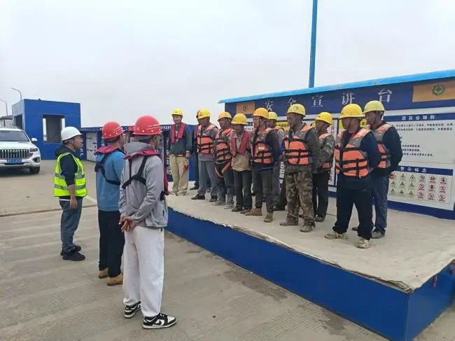 組織農民工參加海上施工安全專題培訓,結合港航工程特點,講解臺風避險、消防逃生、高空作業防護等知識,并通過案例分析警示常見隱患。“安全帶一定要高掛低用!”“腳手架必須驗收合格再使用!”培訓現場互動頻繁,農民工紛紛表示將嚴守安全規范,堅決執行項目安全管理制度。安全班組還定期組織開展應急演練,確保農民工熟練掌握避險技能。