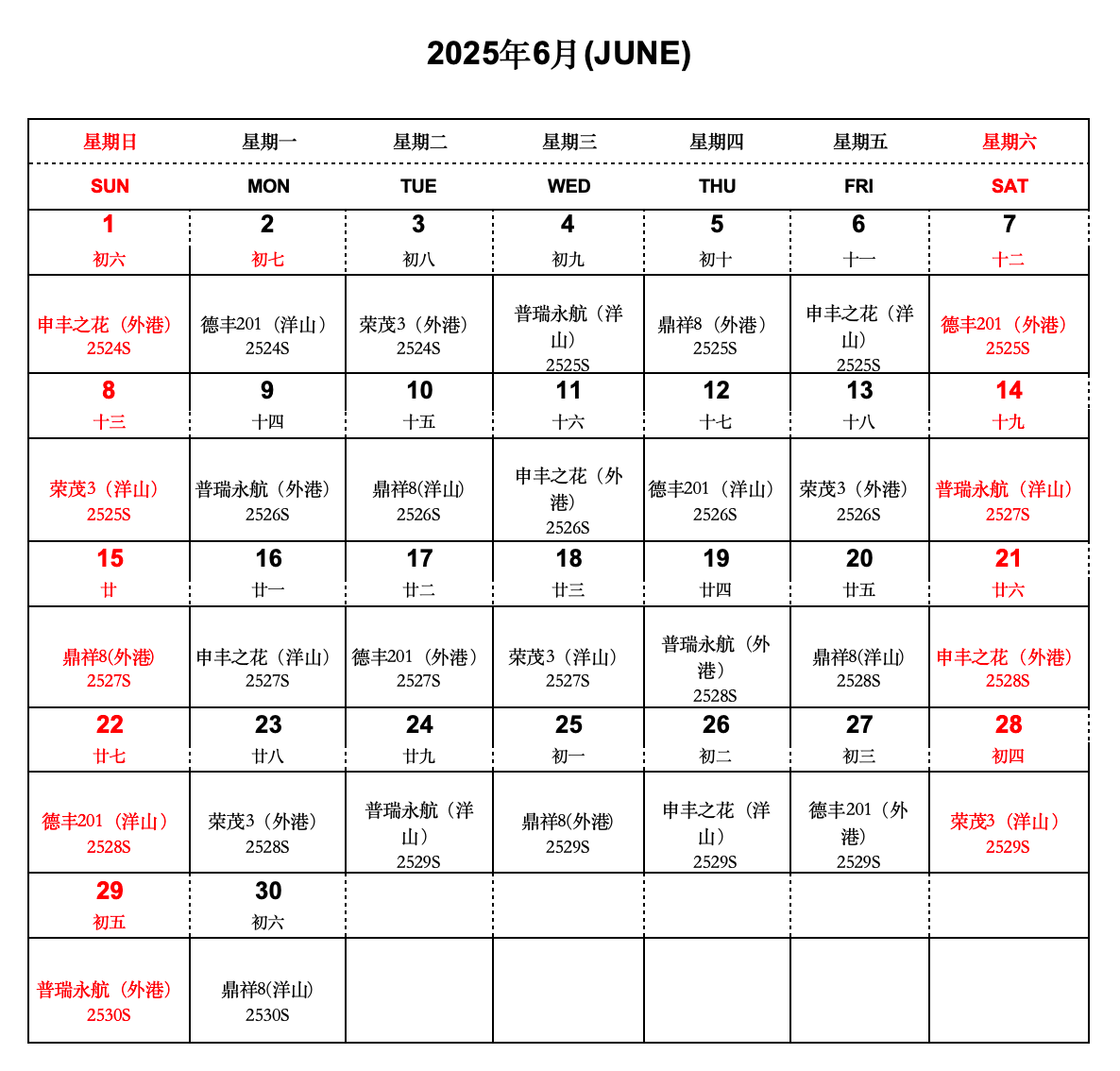 “滬鹽專線”6月船期表已經(jīng)新鮮出爐!