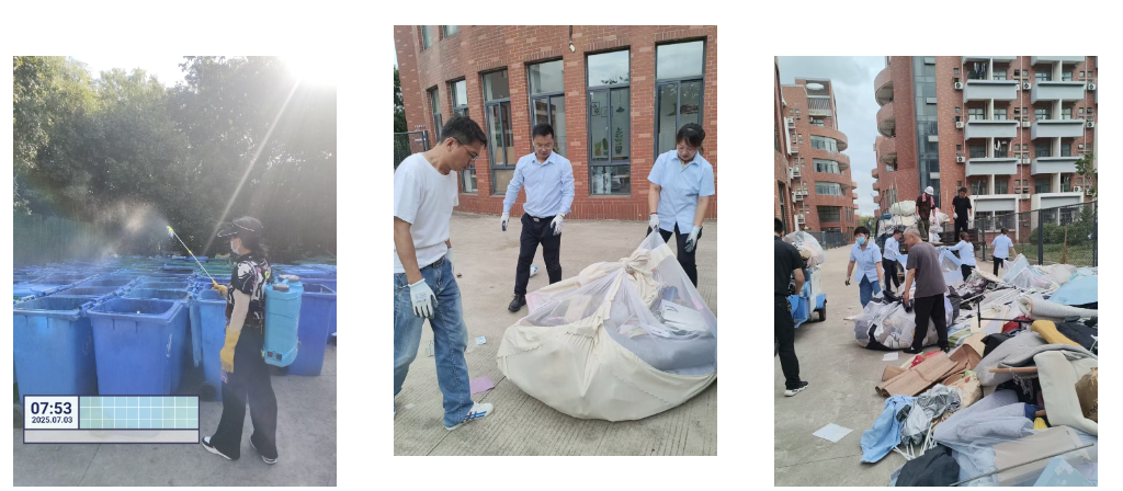 放假前夕,物業(yè)各部門協同開展校園全面“體檢”行動。保潔團隊化身“環(huán)境衛(wèi)士”加大對校園公共區(qū)域的清掃力度,在行政樓、教學樓、學生宿舍等重點區(qū)域開展拉網式清掃,針對垃圾桶、洗手間等易滋生細菌的區(qū)域采用“深度清潔+專業(yè)消殺”,日均清運垃圾超10噸,為離校師生送上一份清爽安心的“離別禮”。