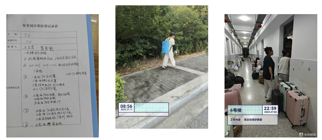 與此同時,一系列暖心服務在校園悄然上演。宿舍區(qū)設立的“行李搬運驛站”前,物業(yè)師傅們頂著烈日幫學生扛運行李;24小時報修熱線始終暢通,高效解決空調故障、水管漏水等突發(fā)問題。校園公眾號推送的《假期安全指南》圖文并茂,宿舍公告欄里的溫馨提示字跡工整,從物品保管到水電安全,細致叮囑滲透到每一個生活細節(jié)。