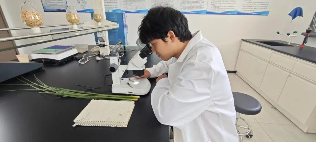 在水稻拔節(jié)孕穗的關(guān)鍵階段,金色農(nóng)業(yè)的生產(chǎn)技術(shù)人員著手對制種稻進(jìn)行花期剝查工作。技術(shù)員運用專業(yè)手法剝開水稻主莖葉片,借助解剖鏡、顯微鏡等精密工具,細(xì)致觀察父母本幼穗的形態(tài)及余葉動態(tài),精準(zhǔn)預(yù)測花期差距。這一技術(shù)環(huán)節(jié)已被納入制種全流程管控體系,使得看似簡單的操作成為判斷父母本花期是否相遇、確保授粉成功的關(guān)鍵“黃金標(biāo)準(zhǔn)”。