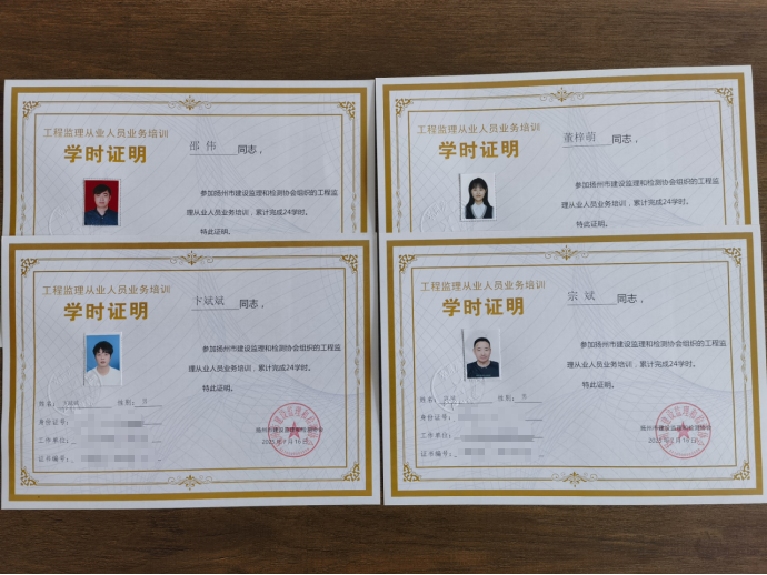 面對新形勢、新要求,監理公司始終將“鍛造專業人才隊伍、提升服務專業化水平”作為核心任務,多措并舉促進員工能力提升:一方面,系統組織員工參加監理專業技能培訓,涵蓋行業最新標準、前沿技術與實戰案例,確保業務能力緊跟行業標準和發展趨勢;另一方面,積極鼓勵員工考取監理工程師、一級建造師等執業資格證書,同時支持員工參與職稱評審。截至2025年8月,公司監理員持證占比達100%,“全員賦能、專業履職”的隊伍構建目標基本實現,“人才強企”戰略初顯成效,為提供高質量監理服務奠定了堅實的人才基礎。