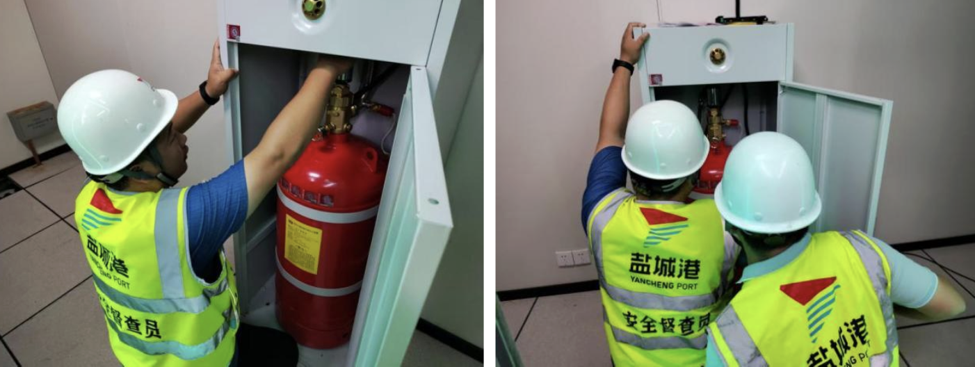 本次檢查深度融合“人防+技防”雙重手段,檢查小組運用紅外掃描儀、壓力傳感器檢測儀等先進設備,對滅火器、消防栓、煙霧報警器等關鍵設施進行了系統性檢測。在碼頭現場,檢查組重點查驗了門機、微機房柜及相關電氣設備的自動滅火系統,通過模擬火災信號全面測試系統響應速度,確保火情發生時能夠迅速響應。在物流園區,針對倉庫電氣線路和防爆設備開展了地毯式排查,借助熱成像測溫技術精準識別潛在過熱風險,堅決杜絕設備“帶病運行”。