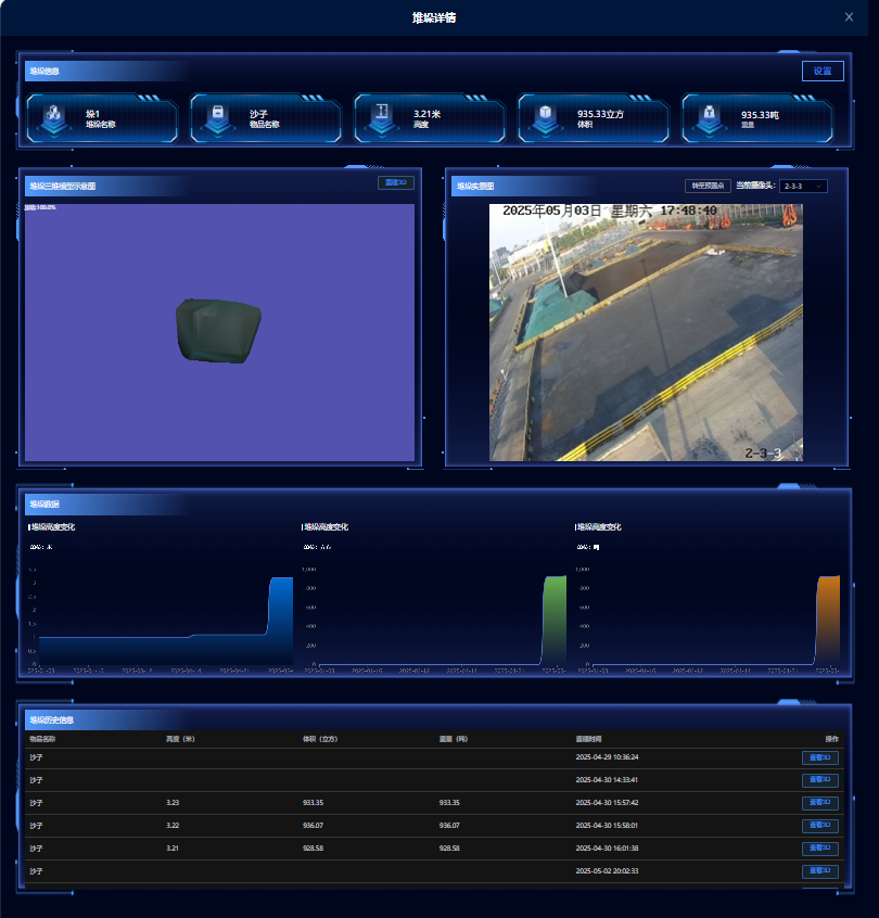 利用港區現有高清攝像頭對港區進行實時監控,通過計算機視覺技術對視頻圖像進行分析,提取相關信息并通過大數據分析,實現料堆數據、空間狀態等信息的可視化管理,進一步滿足對碼頭堆場貨物與物流過程的實時監控,堆場空間智能規劃利用等業務需求。