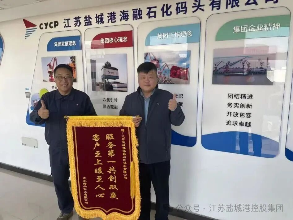 近日,金光博匯專程向石化碼頭送來錦旗,以此致謝碼頭在突發惡劣天氣的考驗下,爭分奪秒完成液堿裝船作業,成功為企業規避3萬美元船舶滯期費用的暖心行動。這面鮮紅的錦旗,不僅是雙方多年來深厚合作情誼的生動見證,更是企業對石化碼頭專業優質服務與高效應急處置能力的高度贊譽。