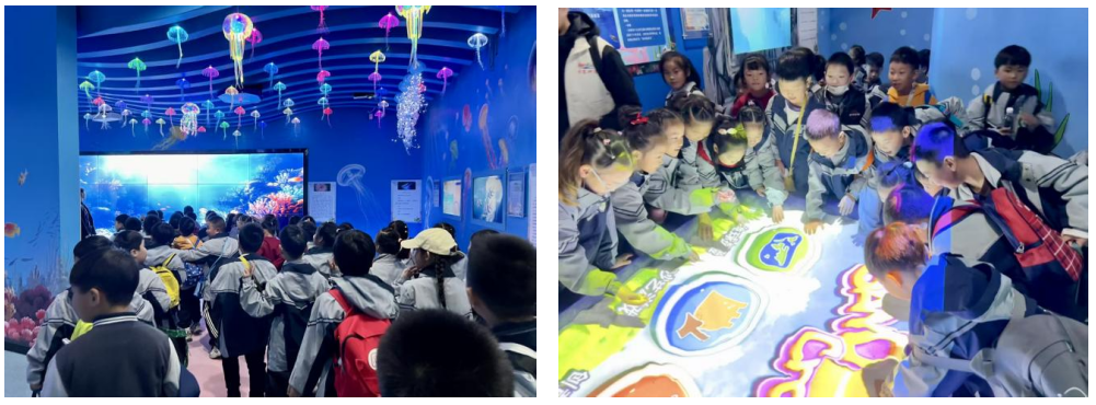 告別課本的平面描繪,步入海洋世界科技館的沉浸式實(shí)景,斑斕的魚群在全息投影中翩然游動,憨態(tài)可掬的虛擬海獸自頭頂悠然滑過。曾經(jīng)書頁上靜止的海洋生物插圖,此刻化作光影中靈動的數(shù)字生命。