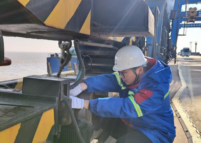寒冬的晨霧還未散盡,陳濤正俯身蜷縮在狹小空間里,滿手油污的指尖精準(zhǔn)對(duì)接著老化油管,他的額角滲著細(xì)汗,眼神卻專注如尺,每一次扳手轉(zhuǎn)動(dòng)都力道均勻,仿佛在完成一場(chǎng)精密的外科手術(shù)。“這臺(tái)設(shè)備承擔(dān)著糧食轉(zhuǎn)運(yùn)的關(guān)鍵任務(wù),油管老化漏一滴油,都可能耽誤整船貨的周轉(zhuǎn)。”他頭也不抬地說著,手邊的工具包敞開著,扳手、螺絲刀的金屬表面泛著溫潤光澤,那是十年如一日的打磨,刻下的不僅是使用痕跡,更是與鋼鐵的默契。在碼頭上,陳濤是公認(rèn)的設(shè)備醫(yī)生,大到正面吊機(jī)的液壓系統(tǒng),小到輸送設(shè)備的一顆螺帽,他都了如指掌。今年汛期,一臺(tái)門機(jī)突然卡殼,若不及時(shí)修復(fù),整船糧食可能受潮變質(zhì)。陳濤帶著班組連續(xù)奮戰(zhàn)3小時(shí),跪在泥濘里排查線路、更換零件,直到設(shè)備重新運(yùn)轉(zhuǎn)。